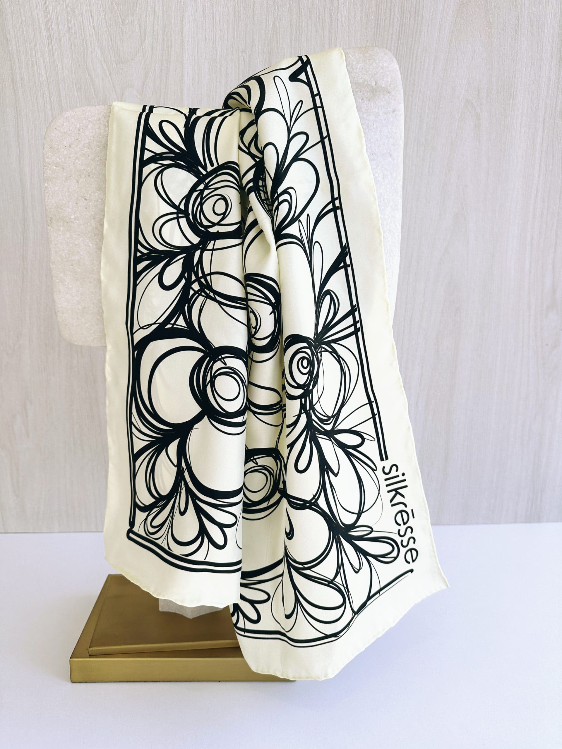Blooms of Love is a captivating silk twill scarf featuring a delicate floral design in rich, warm tones. Its 35” x 35” size makes it the perfect accessory for those seeking a sophisticated pop of color and elegance. Whether worn as a neck scarf, headband, or tied around your bag, Blooms of Love adds a touch of romance and charm to any outfit. Finished with a hand-rolled hem, this design offers a timeless addition to your wardrobe.